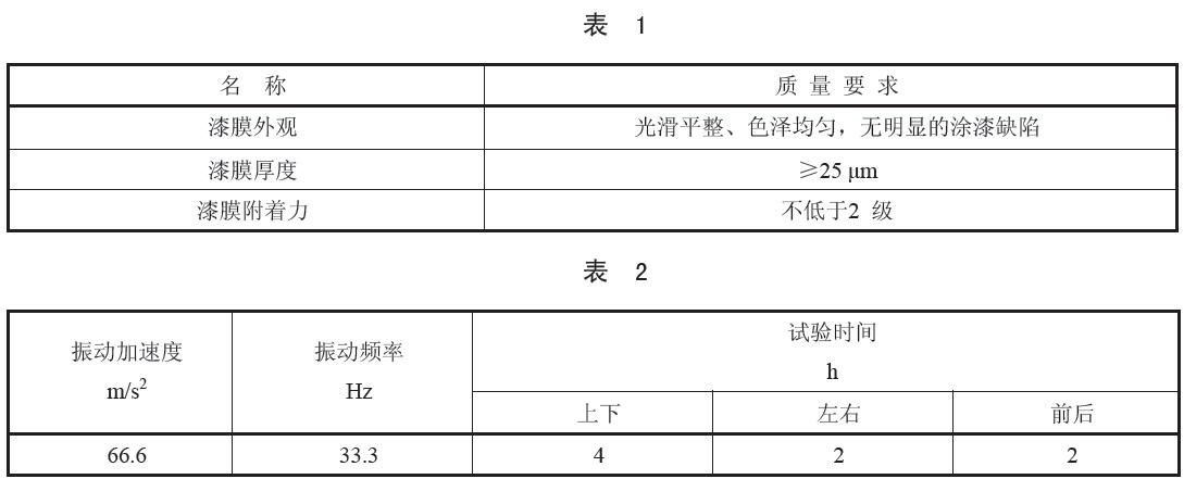 水箱經(jīng)按表2規(guī)定的振動(dòng)參數(shù)和方向進(jìn)行振動(dòng)耐久試驗(yàn)后,應(yīng)進(jìn)行密封性試驗(yàn),不允許滲漏,其零件不允許損壞。